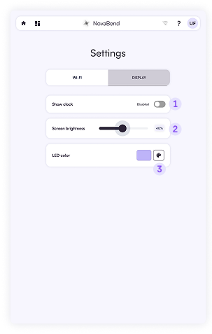 - Screen brightness – slide to set the desired level for comfort and energy saving.
